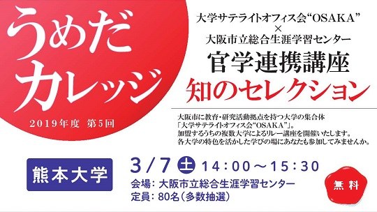 一般【開催中止】※新型コロナウィルス感染拡大防止のため、3月7日 開催予定の「うめだカレッジ」は中止とさせていただきます。