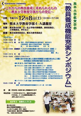 教員養成機能充実シンポジウム「これからの教員養成に求められるもの-熊本大学教育学部からの発信-」を開催します