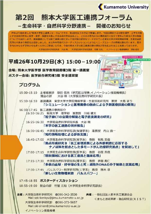 第2回熊本大学医工連携フォーラム-生命科学・自然科学分野連携-を開催します