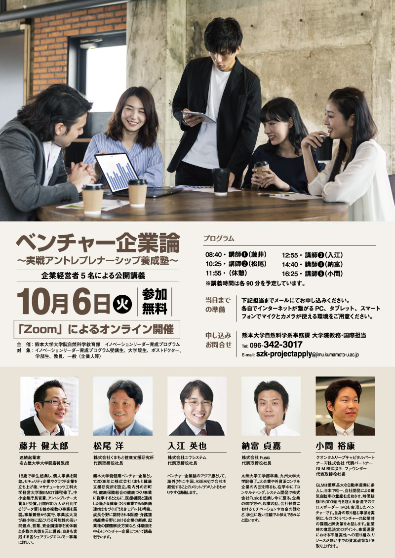 企業経営者5名による公開講義「ベンチャー企業論」のお知らせ
