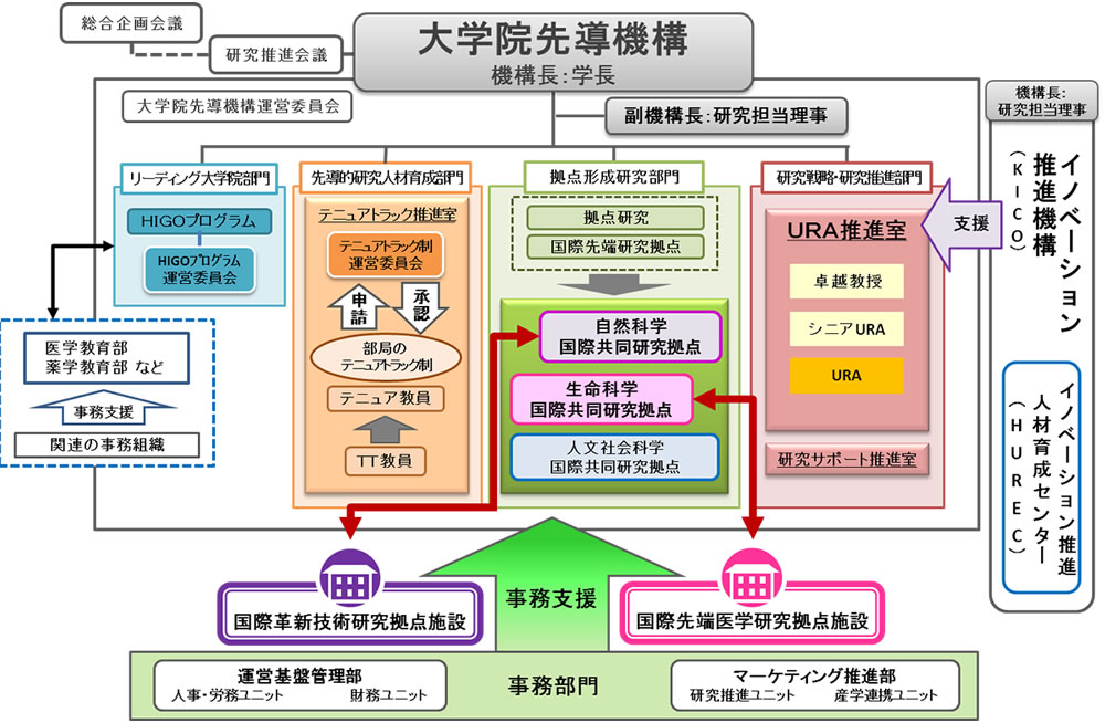 熊本大学におきましては生命科学、自然科学、人文社会科学の3分野に組織する国際共同研究拠点において、優れた研究者を選抜し、それらの教員を支援するURA(リサーチ・アドミニストレーター)を配置することにより、研究の国際性を中心として研究力の強化を図り、世界的にも先端的な研究を推進し、特色ある基盤的研究を強化していきます。