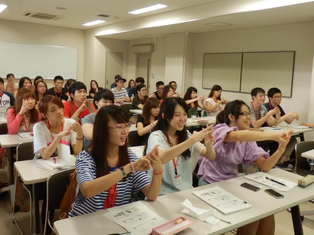 日本語クラスで参加者(赤いストラップ)を