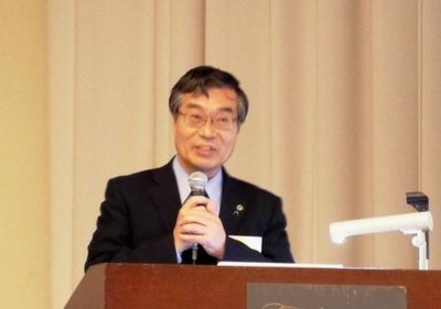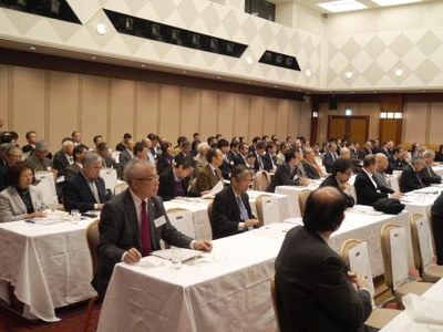引き続き、桑野幸徳関西連合同窓会名誉会長(太陽光発電技術研究組合理事長、昭和38年理学部卒業)より、「新制度、固定買取制度で大きく飛躍する太陽光発電の現状と将来展望-スマートグリッドから太陽光発電によるグローバルエネルギーシステムへ-」と題して、エネルギー消費の歴史と太陽電池の現状、将来に向けての取り組みなどについて講演が行われ、出席者は熱心に聴き入っていました。
