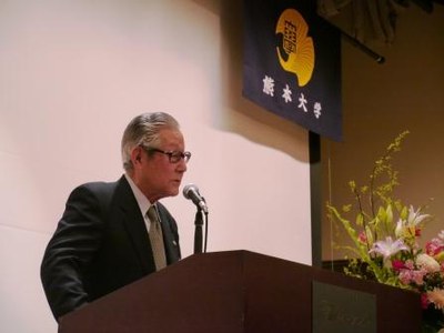 続いて講演会では、谷口功学長より、「激動時代における熊本大学の社会的役割~国立大学の在り方と将来に向けて~」と題して、最近の熊本大学の取り組みや大学を取り巻く今日の社会状況と本学の役割などについて講演が行われました。