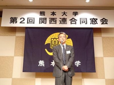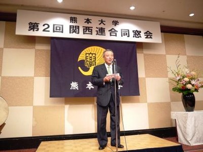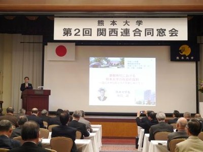 第2回熊本大学関西連合同窓会(会長=西山多加志・工業会大阪支部長)が平成24年12月1日(土)、大阪市都島区の太閤園において、関西地区在住の同窓生及び熊本大学から学長、理事、部局長などの関係者約180名の参加を得て開催されました。