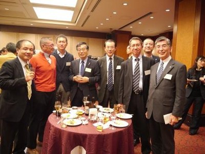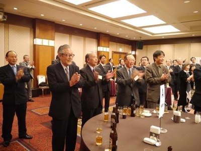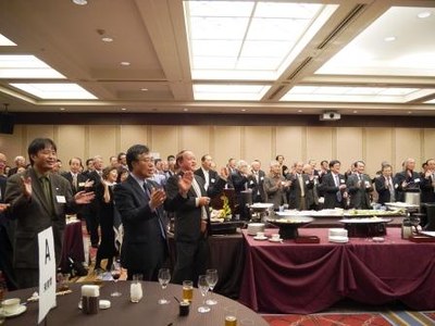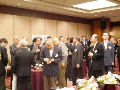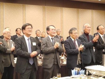 講演会終了後は交流会が開催され、九鬼義英東京連合同窓会会長(東京武夫原会会長、昭和28年法文学部卒業)の挨拶が行われた後、桑野幸徳関西連合同窓会名誉会長の発声で乾杯が行われました。同窓生は、久しぶりに再会した懐かしい学友と学生時代の思い出話などに花を咲かせ、終始和やかな雰囲気で会は進められました。