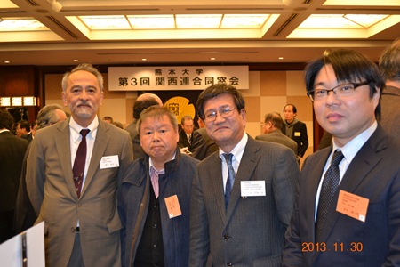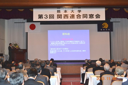 「第3回熊本大学関西連合同窓会」が、平成25年11月30日(土)大阪市都島区の太閤園において、熊本から谷口功熊本大学長、各同窓会会長他を招き、合計176名の参加を得て開催されました。