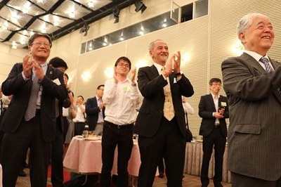 講演会終了後に開催された交流会では、まず古島幹雄熊本大学理事(副学長、昭和51年理学部卒)、峯健二関西連合同窓会会長(工業会神戸支部部長、昭和 52年工学部卒)からの挨拶があり、祝辞が述べられた後、東憲之介工業会宮崎支部会長(昭和55年工学部卒)の発声により乾杯が行われ、参加者は賑やかに 世代や学部を超えた交流を楽しみました。