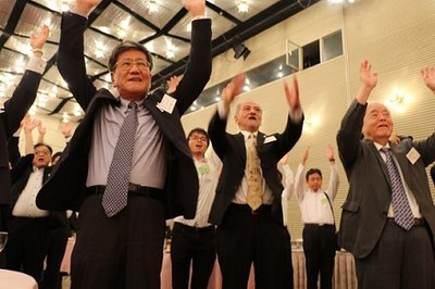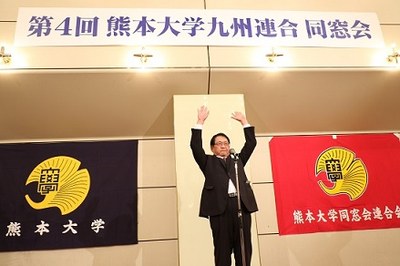 閉会に際しては、村社秀継宮崎県武夫原会会長(昭和46年法文学部卒)から挨拶があり、謝意が述べられ万歳を三唱し、盛況のうちに会は終了となりました。