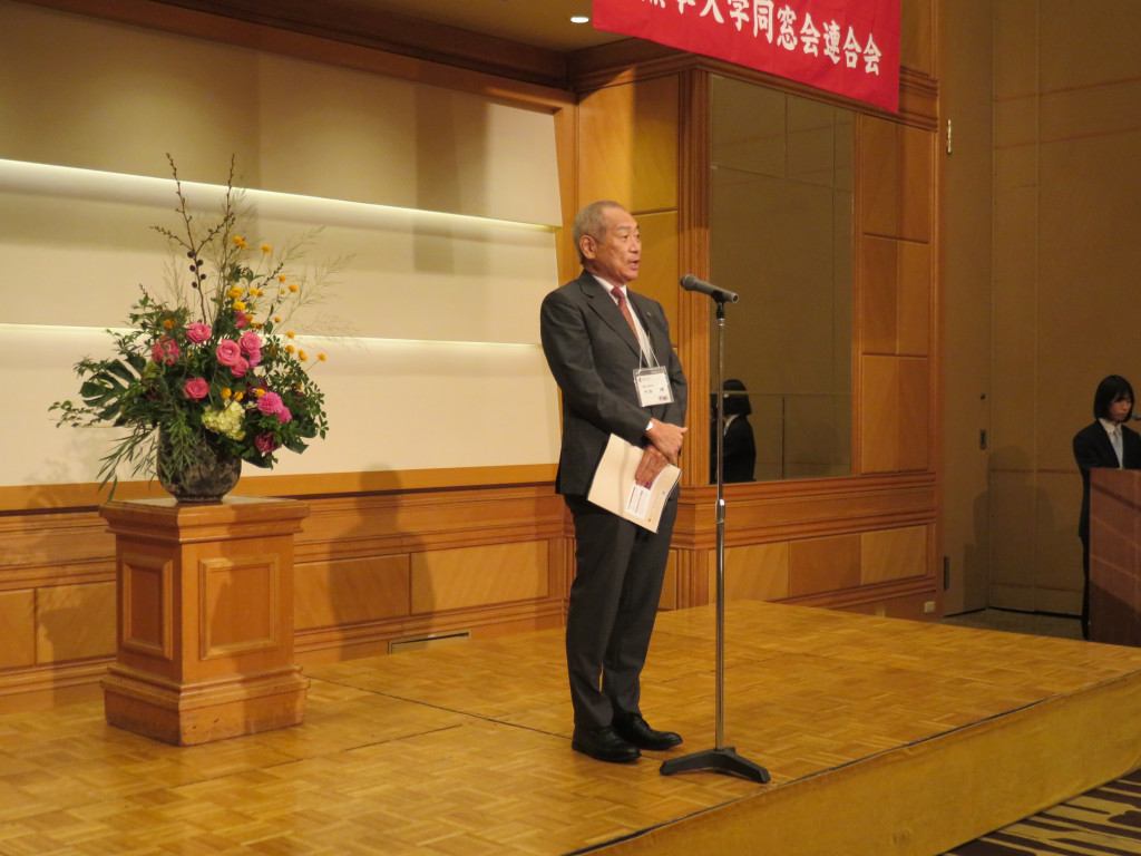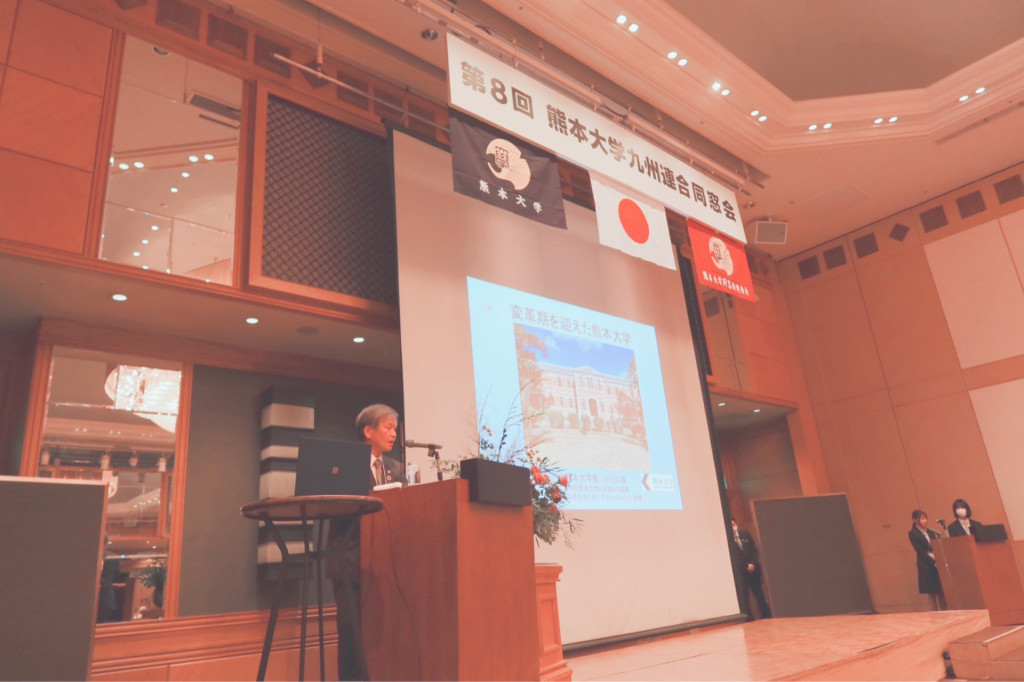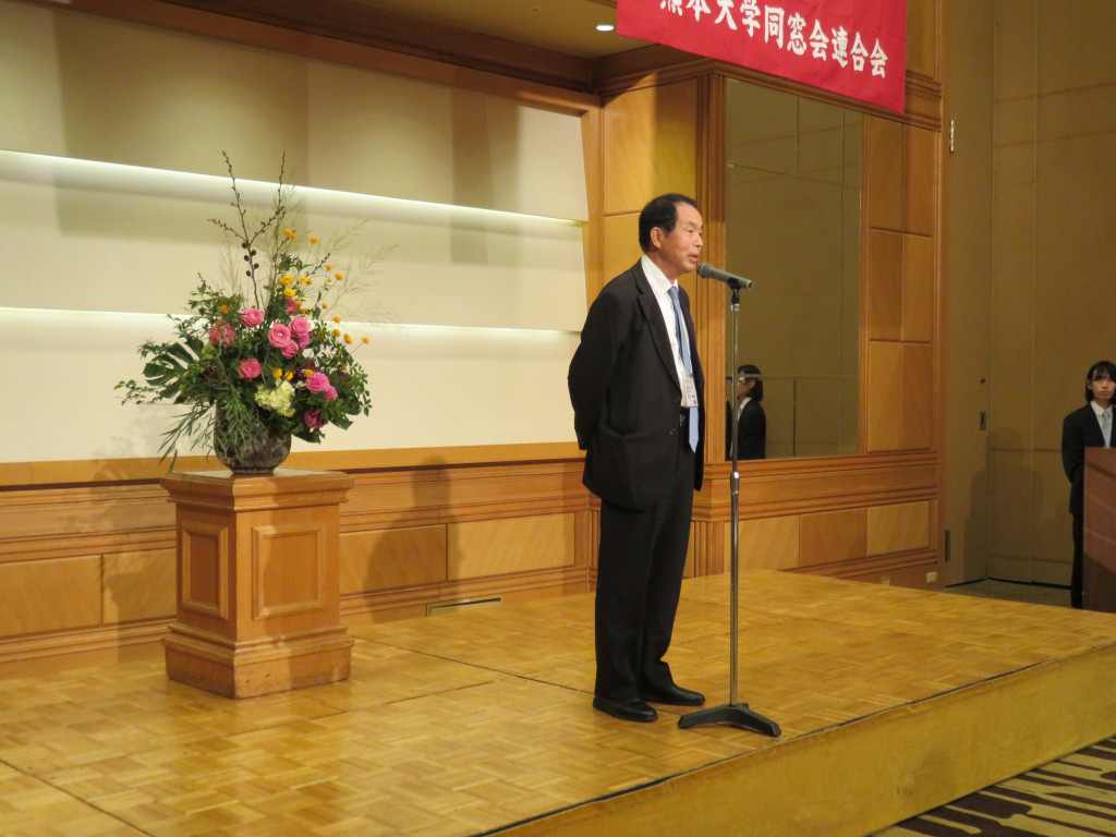 当日は、前半に総会・講演会、後半に交流会を行い、総会・講演会では、吉永誠吾会長、村田信一熊本大学同窓会連合会会長による挨拶の後、同窓会関係者、大学関係者、本同窓会開催に当たり尽力いただいた実行委員の紹介がありました。