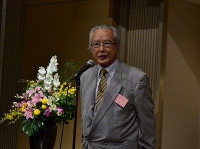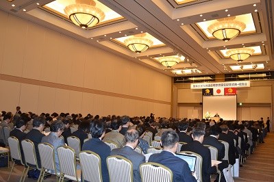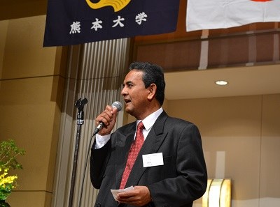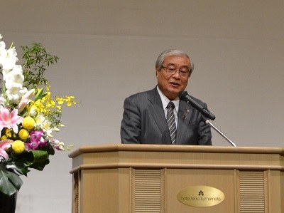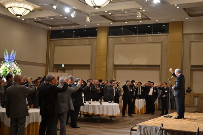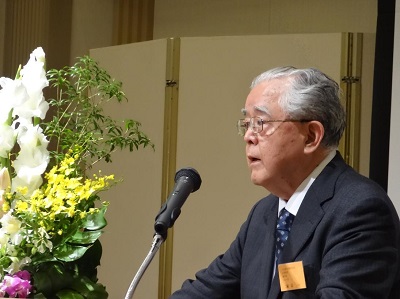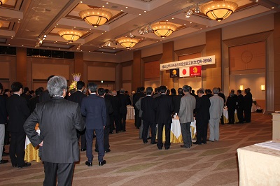 講演会終了後の祝賀会では、九州連合同窓会の先輩にあたる熊本大学東京連合同窓会の中野栄二会長(昭和42年薬学部卒)と熊本大学関西連合同窓会の西山多加志会長(昭和44年工学部卒)から挨拶が行われ、3つの連合同窓会で連携・協力し、共に母校を盛り上げていきたいとの言葉が述べられました。