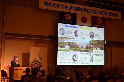 熊本大学(学長=谷口功)では、東京、関西に次ぐ新たな地域別同窓会組織として、熊本大学九州連合同窓会(会長=二塚信、昭和39年医学部卒)が設立され、平成26年4月19日(土)ホテル日航熊本(熊本市中央区)において、九州、沖縄及び山口地区(以下「九州地区」)の同窓生及び谷口功学長以下多数の大学教職員の参加(合計265名)を得て、設立記念式典・祝賀会が開催されました。