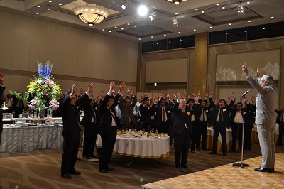 閉会に際しては、九州連合同窓会の土山末人副会長(昭和32年教育学部卒)から、挨拶と今後の発展を祈念した万歳三唱が行われ、会は盛況のうちに終了となりました。