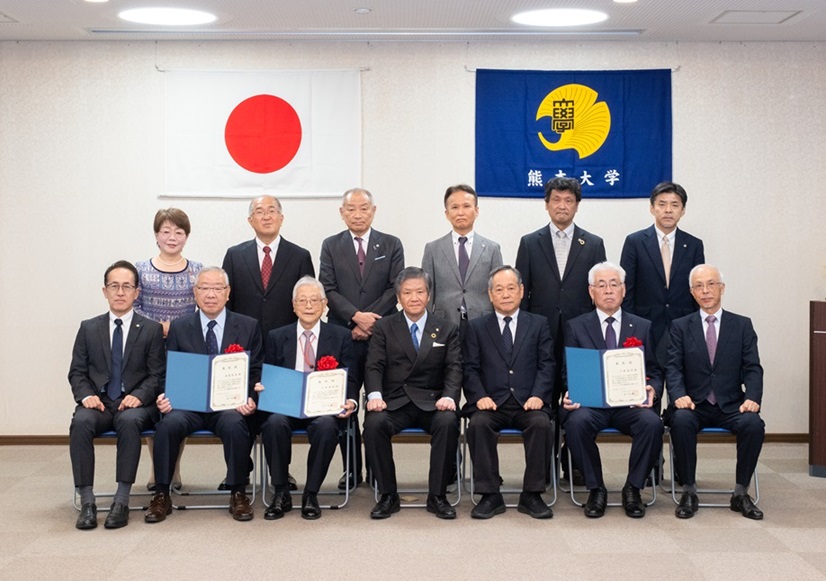 第13回となる今回は、武夫原会(文学部・法学部同窓会)1名、教育学部同窓会1名、理学部同窓会2名、熊杏会(医学部医学科同窓会)1名、薬学部同窓会2名、工業会(工学部同窓会)3名、医学部保健学科同窓会1名の計11名が表彰を受けられました。