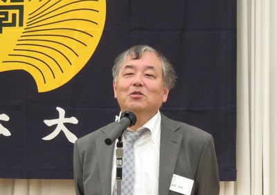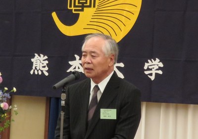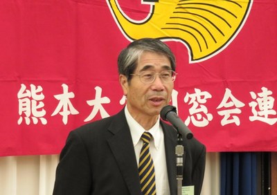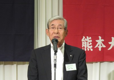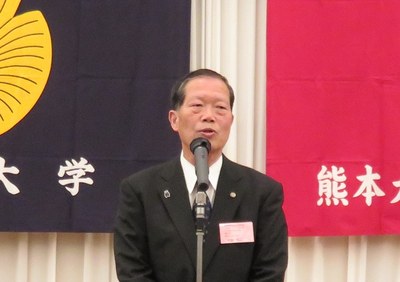 講演会終了後に開催された交流会では、まず古島幹雄熊本大学理事(副学長、昭和51年理学部卒)、本島昭男関西連合同窓会会長(関西武夫原会会長、昭和 43年法文学部卒)、安田宏正九州連合同窓会会長(武夫原会理事、名誉フェロー、昭和42年法文学部卒)からの挨拶があり、祝辞が述べられました。