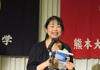 戸田講師からは、大気汚染の原因となる粒子状物質(PM2.5)に関する説明、粒子状物質の採取・分析の方法について、学生の実験への参加を含めてユーモアに富んだ内容で説明され、中国における春節時の塩素酸、過塩素酸濃度の熊本との比較、さらにはロシアのバイカル湖における水質の測定など、熊本の空気・水との関わりを交えた特色ある研究成果が述べられました。