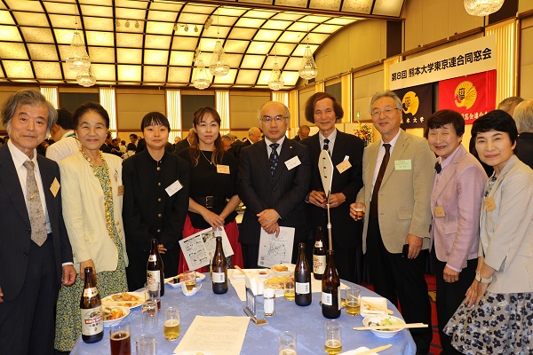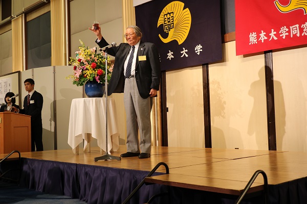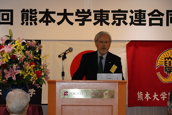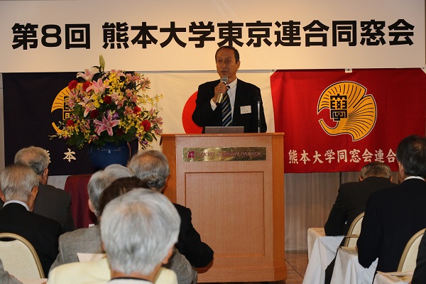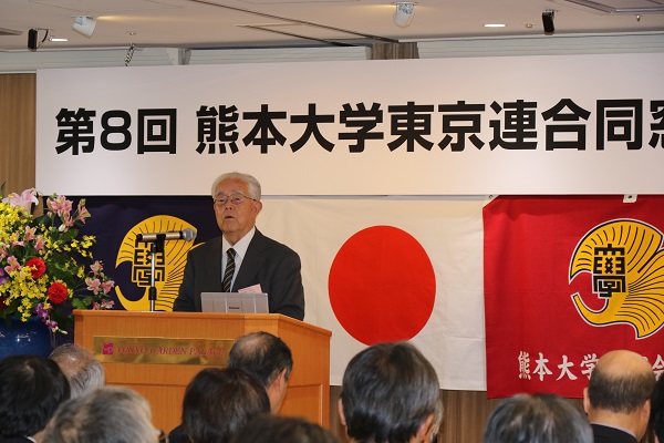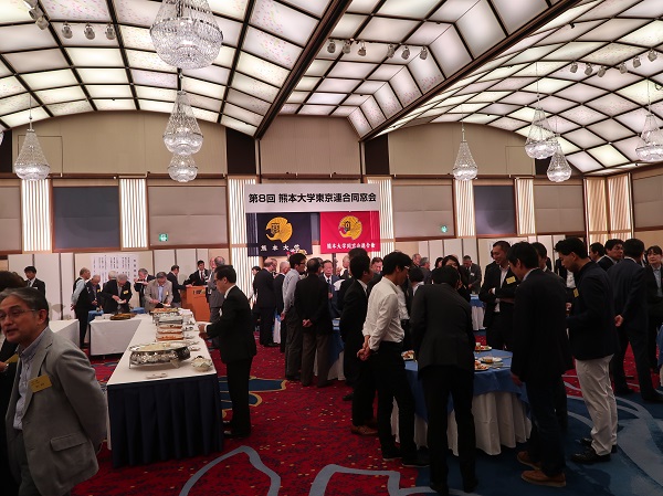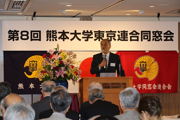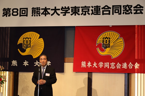 交流会では、児倉静二関西連合同窓会会長、安田宏正九州連合同窓会会長及び前田隆熊本県東京事務所次長から祝辞が述べられた後、江口工東京連合同窓会顧問の発声で乾杯が行われ、参加者は賑やかに世代や学部を超えた交流を楽しみました。