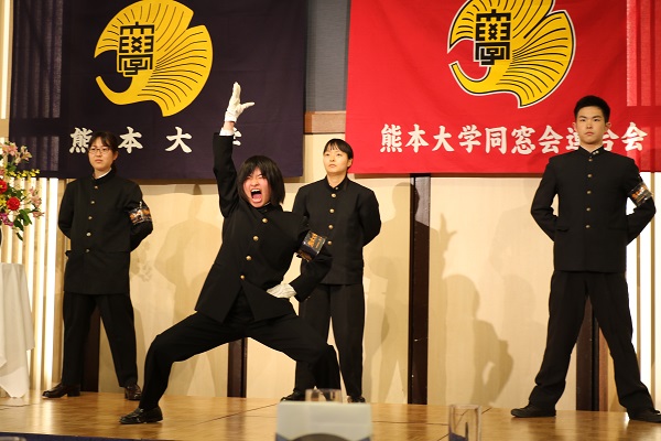 会の終盤では、現役学生である中村あゆみ応援団団長と団員による"巻頭言"及び"五高寮歌"が披露され、閉会に際しては、瀬崎徳久東京連合同窓会副会長から挨拶があり謝意が述べられ、盛況のうちに会は終了となりました。