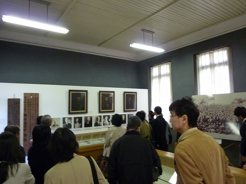 今回は、ホームカミングデーに合わせて、会場である工学部百周年記念館のロビーにて「熊大60年写真展」を同時開催いたしました。古くは五高時代から最近の本学の状況まで、母校の変遷を写真や史料とともにご覧いただきました。