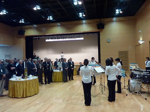 パーティの最後に、応援団による演舞のあと、旧制第五高等学校寮歌「武夫原頭に草萌えて」を参加者全員で大合唱し盛会のうちに閉宴しました。