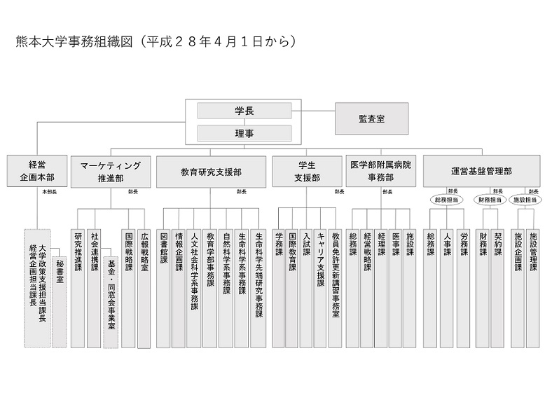 本学は、平成28年4月1日から、下記のとおり事務組織を改編しますのでお知らせいたします。