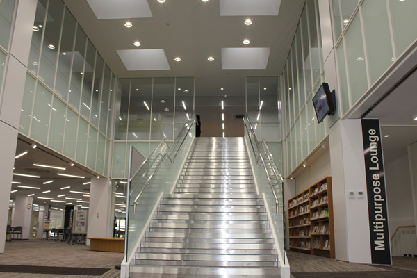 今回の改修ではラーニングコモンズという新しい図書館機能を設けており、2階の「静」の空間、1階の「動」の空間、また地階の「蓄(アーカイブ)」の空間の棲み分けにも十分配慮し、図書館のこれまでの実績や新たなサービスを踏まえつつ、新時代の図書館にふさわしい機能の実現と意義ある諸サービスを提供することが可能なものとなっています。